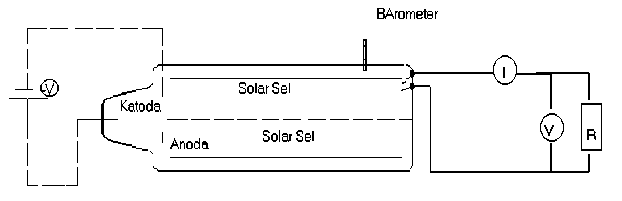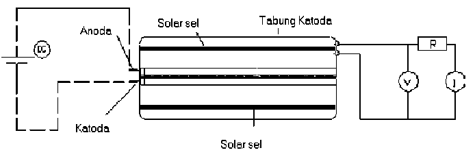 Cahaya yang dihasilkan dari tabung katoda digunakan untuk mengganti cahaya matahari. Pada saat foton yang dihasilkan dari tabung katoda menyinari sel surya, maka elektron-elektron yang ada pada sel surya akan menerima sejumlah energi, sehingga elektron mampu bergerak melewati gap