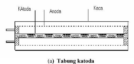 2) Material yang digunakan sebagai katoda adalah campuran antara tungsten dan thorium, karena memiliki kekuatan mekanik yang bagus, titik lebur yang tinggi, fungsi kerja yang tinggi serta memerlukan daya input yang lebih kecil.