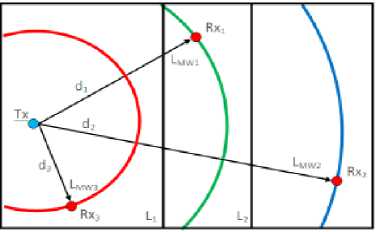 Lmw(d)=L0 +10/ log(d) + ∑ Kvii Lwi i=1 .... (2)