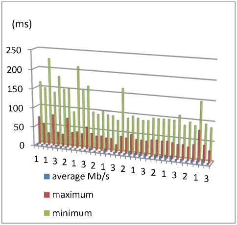 Pada throughput didapatkan nilai rata-rata sebesar 5,617 Mbps. Sehingga kualitas dari setiap situs tersebut terdegradasi bagus dengan jarak 8-12 m dari access point ke penerima. Sehingga kualitas jaringan tetap baik saat jangkauan sinyal pemancar pada titik terjauh, seperti diperlihatkan pada gambar 5.