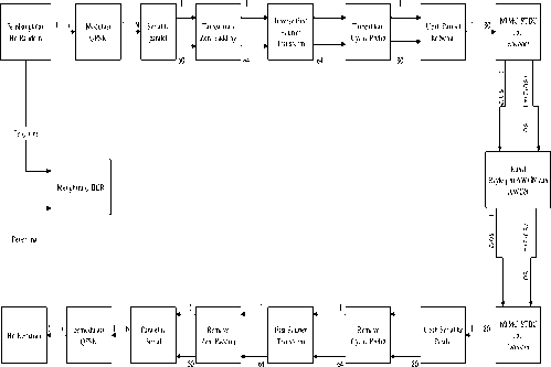Proses pada sistem OFDM-MIMO hampir sama dengan sistem MC-SS MIMO hanya saja tidak terdapat proses spreading simbol dalam sistem OFDM MIMO pada blok setelah modulasi QPSK. Simbol hasil modulasi pada sistem OFDM MIMO setelah dimodulasi kemudian diubah dari deretan serial ke parallel untuk menyesuaikan dengan subcarrier. Tahapan selanjutnya adalah penambahan zero padding, IFFT, penambahan cyclic prefix, kemudian diubah kembali dari parallel ke serial sebelum masuk ke blok MIMO STBC 2x2.