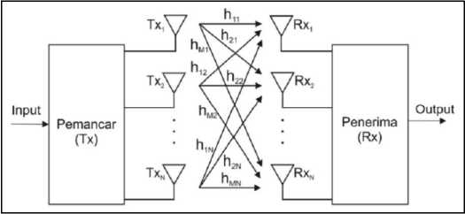 Persamaan 3 merupakan representasi dari sistem MIMO [4] yang ditunjukkan pada Gambar 3,