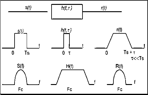 Flat Fading (Fading Rata) disebut juga Rayleigh Fading dapat terjadi apabila kanal mempunyai penguatan yang konstan dan tanggapan fase linier dengan bandwidth yang lebih lebar dibandingkan dengan bandwidth sinyal yang ditransmisikan. Pada kondisi ini, level sinyal yang diterima berubah terhadap waktu yang disebabkan oleh multipath [5]. Karakteristik kanal flat fading ditunjukkan pada Gambar 7: