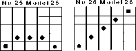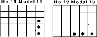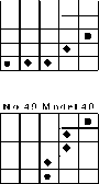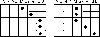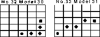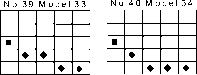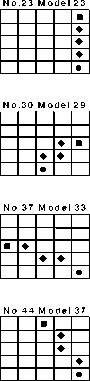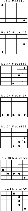 karakteristik dalam bujur sangkar ini dipergunakan sebagai pedoman untuk membentuk pola model. Metode Pola Busur dengan pembatasan ini disebut dengan Metode Pola Busur Terlokalisasi. Dengan menggunakan sampel tandatangan Indonesia, dari metode ini didapatkan 52 buah pola model yang dikelompokkan menjadi 42 pola model, seperti terlihat pada Gambar 2. Ada beberapa model yang mirip dikelompokkan menjadi satu model, contohnya seperti nomor 33, 34 dan 35 dikelompokkan menjadi satu yaitu model 31. Angka di sebelah kiri atas pola menunjukkan nomor urut pola, sedangkan angka di sebelah kanan atas pola adalah nomor model.
