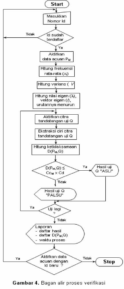 Rancangan sistem verifikasi adalah seperti yang terlihat pada Gambar 5, sedangkan bagan alir prosesnya terlihat pada Gambar 4 dan Gambar 3.