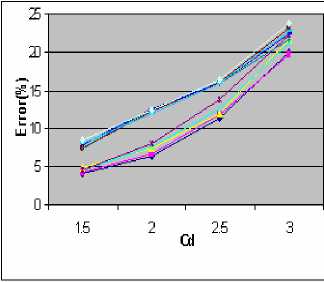 Grafik prosentase kesalahan Tipe I pada Gambar 6 terlihat bahwa semakin besar konstanta pengali nilai ambang (Cd) maka prosentase kesalahan yang terjadi akan semakin kecil, karena rentang penerimaan semakin besar sehingga sistem akan semakin toleran menerima variasi tandatangan dengan beda yang lebih besar. Sedangkan grafik prosentase kesalahan Tipe II pada Gambar 7 menunjukkan bahwa semakin besar nilai Cd maka prosentase kesalahan semakin besar pula. Kedua hal ini berlaku untuk semua variasi lingkungan sistem baik variasi konstanta q maupun pola model.