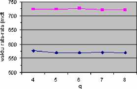 Grafik pada Gambar 9 menunjukkan bahwa rata-rata waktu proses verifikasi setiap tandatangan dengan variasi nilai q untuk masing-masing pola model adalah relatif tetap.
