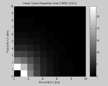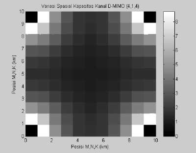 4.1.1. Variasi Spasial Kapasitas Kanal D-MIMO (4,1,4)