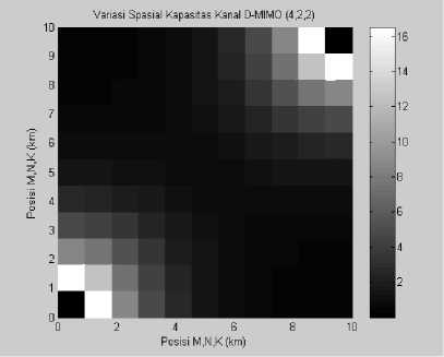 Gambar 7. Variasi Spasial Kapasitas Kanal D-MIMO