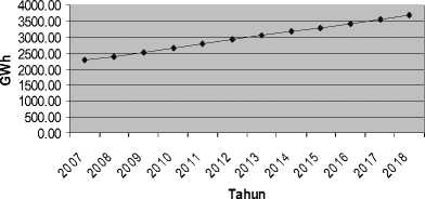 Dari Gambar 3 Garfik Prakiraan Kebutuhan Tenaga Listrik Propinsi Bali Tahun 2007 – 2018 dan tabel 1 Prakiraan Kebutuhan Tenaga Listrik Total Propinsi Bali Sampai Tahun 2018 terlihat bahwa jumlah kebutuhan tenaga listrik total dari seluruh sektor cenderung meningkat dari tahun 2007 dengan jumlah total kebutuhan tenaga listrik Propinsi Bali adalah sebesar 2275.53 GWh dan pada tahun terakhir prakiraan yaitu tahun 2018 kebutuhan tenaga listrik Propnsi Bali adalah sebesar 3700,03 GWh dengan rata-rata peningkatan pertahun adalah sebesar 135,202 GWh pertahun