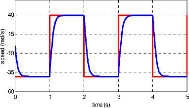 Gambar 9 menunjukkan respon motor pada saat diberikan step speed demands bolak-balik. Pada simulasi ini motor dikontrol untuk berputar maju (clockwise) dan mundur berganti arah (anti clockwise) setiap 2 detik. Dapat dilihat bahwa kecepatan motor mengikuti kecepatan referen dengan baik. Terlihat ada sedikit perbedaan antara kecepatan referen dengan kecepatan sebenarnya dari motor. Hal ini bisa diperkecil dengan memilih parameter dari pid kontroller sedemikian hingga respon yang dihasilkan akan optimum.