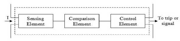 Prinsip dasar relay pengaman umumnya dapat dibedakan menjadi tiga elemen fundamental seperti yang ditunjukan pada gambar 1 [8] :