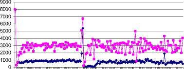 Gambar 3. Jumlah bit/frame video Trevor dengan variable step size kuantisasi untuk target bit rate tetap