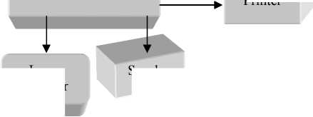 Secara umum perancangan perangkat keras sistem antrian elektronik ini dapat dilihat pada Gambar 1. PPI 8255 dipasang pada slot ekspansi komputer, sedangkan port PPI 8255 dihubungkan ke perangkat input/output rangkaian seven segment. Rangkaian seven segment terbagi tiga group yang diberi nama “Display 1”, “Display 2” dan “Display 3”. Masing-masing “Display” terdiri dari tiga buah seven segment dan tiga buah IC Latch dan sebuah input berupa saklar tekan. Jadi setiap display mampu menampilkan tiga digit angka desimal. Speaker sendiri berfungsi sebagai penampil suara, dan printer untuk mencetak nomor antrian.
