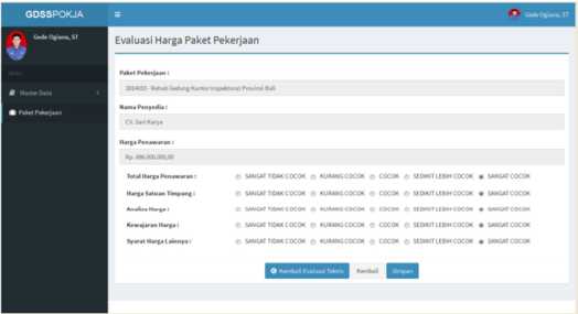 Tahap awal, Pokja ULP diberikan task berupa tugas mengevaluasi penawaran menggunakan aplikasi GDSS.