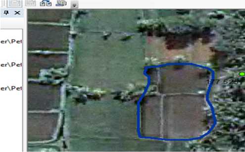 Koordinat aset tanah yang sudah ditemukan pada data citra, kemudian digambarkan batas-batas garis bidang asetnya.