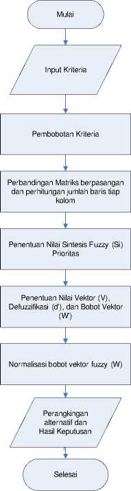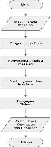 Desain penelitian ini menggunakan metode Fuzzy AHP dan interface menggunakan Visual Basic dan MySQL. Dan langkah – langkah penelitian dapat dilihat pada Gambar 1.