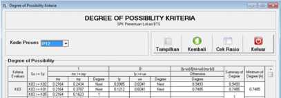 Berdasarkan hasil dan analisis yang dilakukan, dapat disimpulkan bahwa metode Fuzzy AHP dan interface Visual Basic–MySQL dapat digunakan untuk membangun sebuah sistem pengambilan keputusan untuk penentuan daerah atau lokasi terbaik untuk BTS PT. Smartfren di masing-masing kabupaten dengan menggunakan kriteria received signal, neighborlist, tower availability, dan BTS other operator.