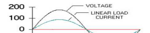 Beban linier adalah beban yang komponen arusnya proporsional terhadap tegangannya. Terdapat hubungan yang linier antara arus dan tegangan sehingga bentuk gelombang arus akan sama dengan bentuk gelombang tegangannya, seperti terlihat pada gambar 2. Beban linier menyerap arus sinusoidal bila disuplai oleh tegangan sinusoidal [5].