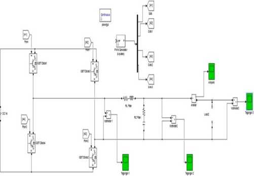 Pada GTI (Grid Tie Inverter) memiliki komponen berupa, MOSFET, induktor, kapasitor, dan diode. Pada penelitian ini, komponen-komponen tersebut dibuatkan single line diagram pada MATLAB. Single line diagram tersebut dapat dilihat pada gambar 3.