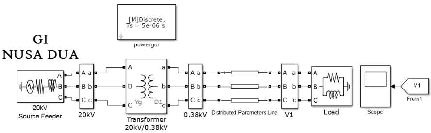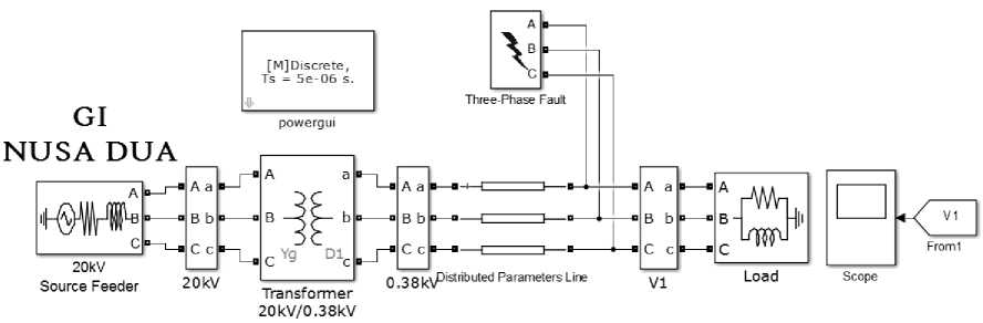 3. Pemodelan sistem Penyulang Kampus pada Program Simulink MATLAB.
