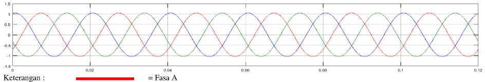 Gambar 8. Gelombang tegangan 3 fasa tanpa gangguan kedip tegangan pada penyulang kampus
