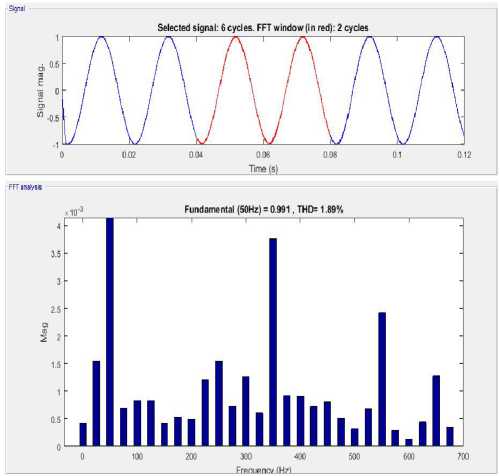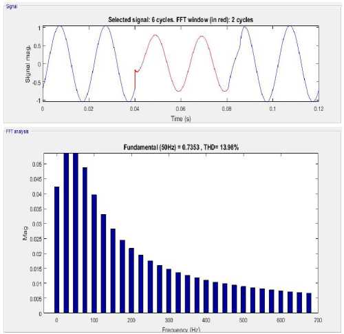 Pada tabel III dapat dilihat bahwa kandungan THDv pada setiap fasa berkurang. Hal ini disebabkan oleh filter pasif yang ditempatkan pada sisi keluaran VSC (Voltage Source Converter) telah mereduksi THDv.