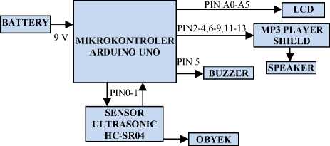 DOI: https://doi.org/10.24843/MITE.2018.v17i01.P10 masukan dari sensor ultrasonik melalui ping Digital akan diproses oleh arduino kemudian dikirimkan ke LCD, Buzzer, dan Speaker sebagai output .