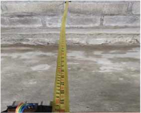 Pengujian dilakukan dengan prototipe didorong mundur atau dikurangi jarak menjadi 150cm pada pita-ukur, ditunjukkan pada Gambar 21.