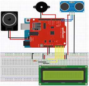 Perancangan Hardware pada sensor jarak sebagai alat bantu memmarkir mobil berbasis mikrokontroler arduino uno menggunakan program Fritzing 0.9.2.