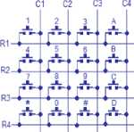 Konstruksi matrix keypad 4×4 terdiri dari 4 baris dan 4 kolom dengan keypad berupa saklar push buton yang diletakan disetiap persilangan kolom dan barisnya.