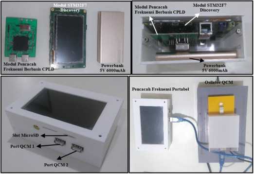 Gambar 7 Hasil Implementasi desain sistem embedded berbasis ARM Cortex M7 STM32F746NG untuk pengukuran frekuensi sensor QCM portabel