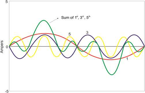 Gambar 1: Frekuensi Fundamental, Harmonik Ketiga, Harmonik Kelima dan Penjumlahannya