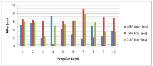 D. Perbandingan Hasil Pengujian Jitter pada Metode VRRP, HSRP, dan GLBP.