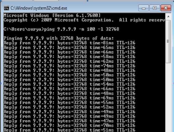 Tracing route to SERUEFt-NEU [9.9.9.9 3 ouer a maximum of 30 hops: