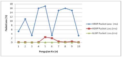 Gambar 14: Grafik pengujian packet loss VRRP, HSRP dan GLBP.