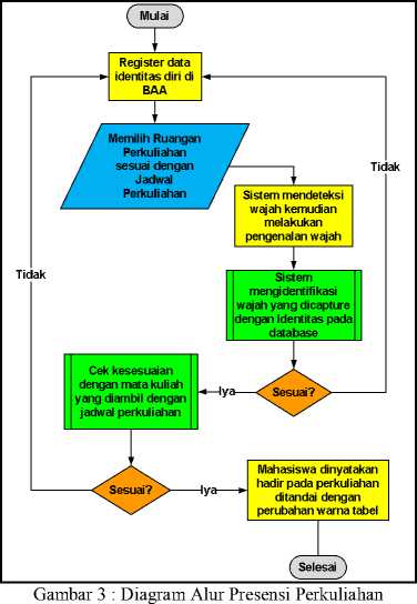 dilalui oleh sistem monitoring kehadiran perkuliahan berbasis face detection menggunakan algoritma Viola-Jones pada saat melakukan presensi. Tahapan-tahapan pada proses presensi perkuliahan disajikan pada Gambar 3.