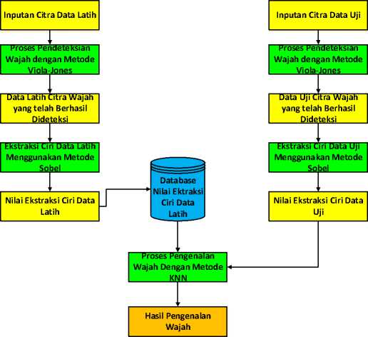 Pada proses pengenalan wajah, data-data citra wajah terlebih dahulu mengalami proses ekstraksi ciri sehingga citra-citra tersebut memiliki suatu nilai karakteristik. Nilai karakteristik tersebut akan disimpan ke dalam basis data sehingga membentuk suatu dataset citra wajah. Kemudian