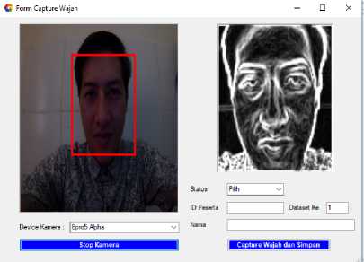 Gambar 6 : Form antarmuka Pengambilan Dataset Citra Wajah