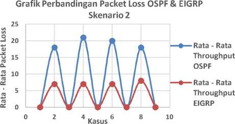 a. Rata – rata nilai delay menunjukkan hasil yang lebih baik pada OSPF daripada EIGRP yaitu sebesar 1-6 ms. Pada OSPF dan EIGRP menunjukkan nilai selisih yang tidak terlalu besar karena update routing hanya dilakukan pada saat jaringan mengalami perubahan.