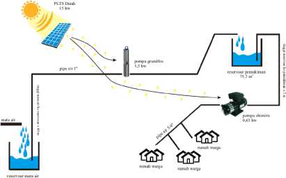 pedesaan untuk mengangkat dan mendistribusikan air dari sumber mata air ke wilayah pemukiman desa.