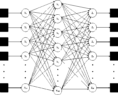 Arsitektur ANN yang digunakan adalah feedforward dengan algoritma backpropagation. ANN banyak lapisan (multilayer) dengan fungsi aktivasi sigmoid, satu lapisan masukan (input layer) 24 sel (24 jam), satu lapisan dalam (hidden layer)