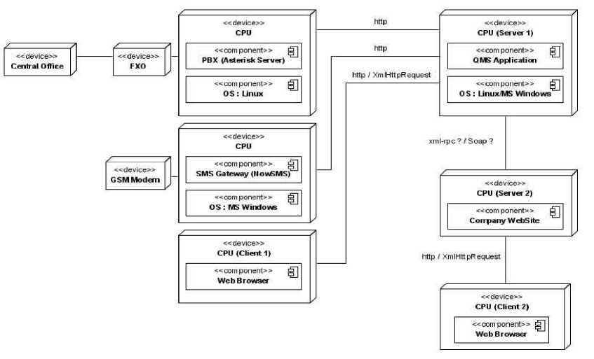 Gambar 1. Deployment diagram manajemen sistem antrian memanfaatkan komunikasi seluler terintegrasi LAN
