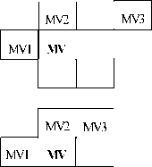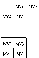 Gambar 2. Pendefinisian ulang kandidat prediktor MV1, MV2 dan MV3 untuk setiap blok luminance dalam suatu macroblock