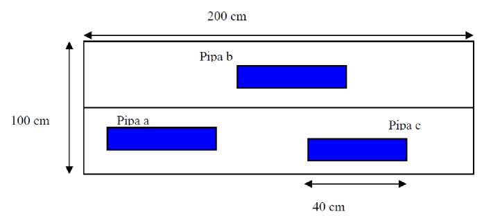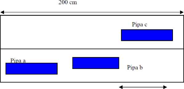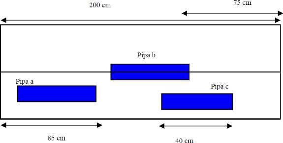 Pada posisi ini 1 buah pipa diletakkan di bawah lintasan secara mendatar dengan kedalaman 30 cm dari permukaan pasir, jarak dari tepi kanan kaca sekitar 50 cm dan jarak dari tepi kiri sekitar 100 cm,