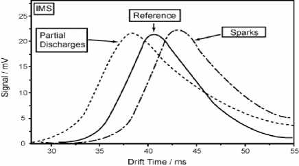 At first gas reference according to IEC 376 standard was injected to IMS for calibration purpose. Spectrum mobility of gas reference is shown in Figure 4 and its characteristics are: