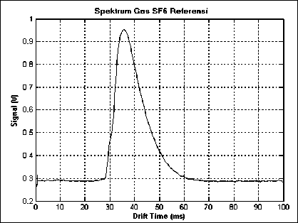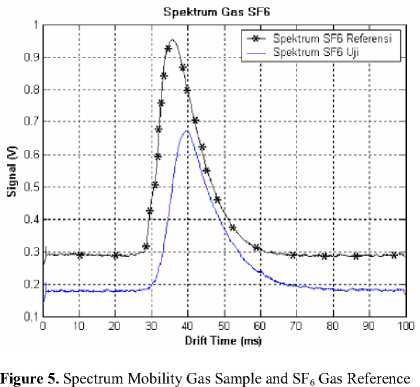 Ion mobility spectrum informs condition of measured gas and compared with gas reference. Pure SF6 gas is used as calibrator of IMS and indicator existence of