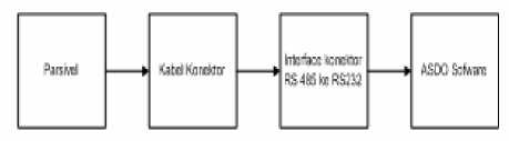 Disdrometer optic bekerja berdasarkan system laser optic. Pengukuran dapat dilakukan secara real time, jika ada partikel-partikel hujan yang melewati balok laser maka disdrometer dapat mendeteksi curah hujan (mm/h) dan distribusi titik hujan (DSD) dapat dilihat pada Gambar 2, kemudian hasilnya disimpan dalam software yang disebut data parsivel yang blok diagram sistem pengukuran secara keseluruhan dapat dilihat pada Gambar 3.