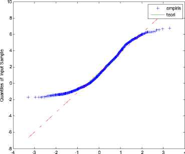 Simulasi dari data yang di tes dengan uji Quantil Quantity (QQ) menguji data hasil empiris diberikan hasil bahwa data bersifat normal serta pelang terjadinya data normal yang menyinggung garis 45 derajat. Dari Pengujian tersebut diperoleh bahwa pembangkitan curah hujan dapat mempergunakan untuk pembangkitan acak normal gaussian N(0,1) dalam kondisi stasioner.