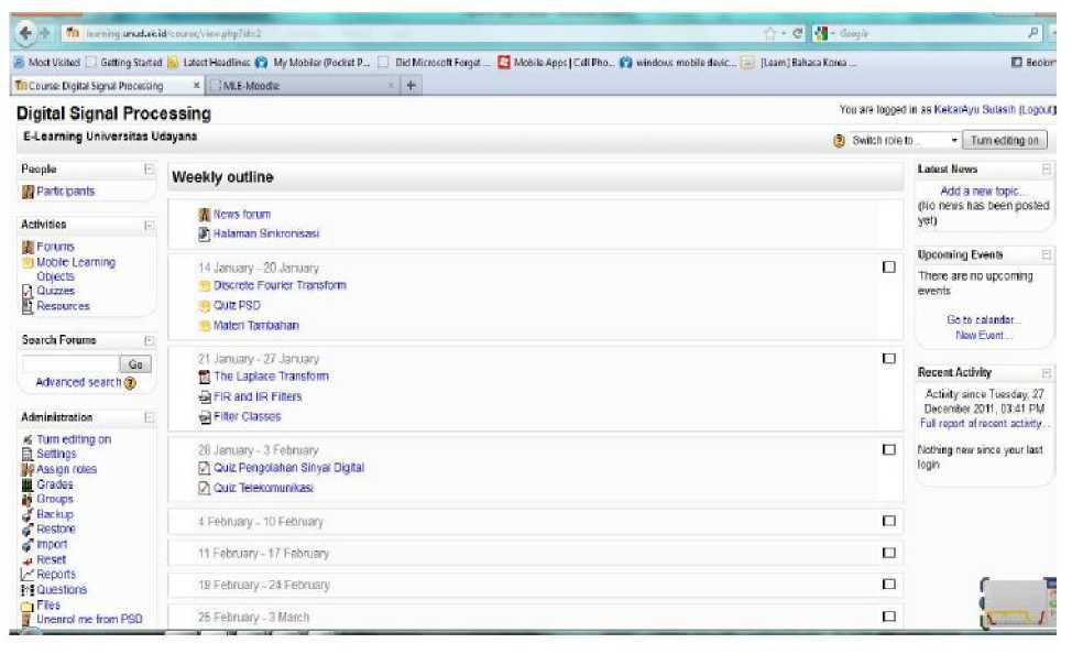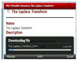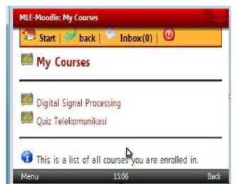 Moodle (Modular Object Oriented Dynamic Learning Environment) is e-learning open source software. Moodle provides many features which is needed by learning process. Mobile Learning Engine (MLE) is one of Moodle plug-ins for mobile learning. Therefore MLE Moodle can be accessed by mobile/cell phones [2]. Learning material, such as ebook, quiz, multiple choice, essay, etc can be accessed.